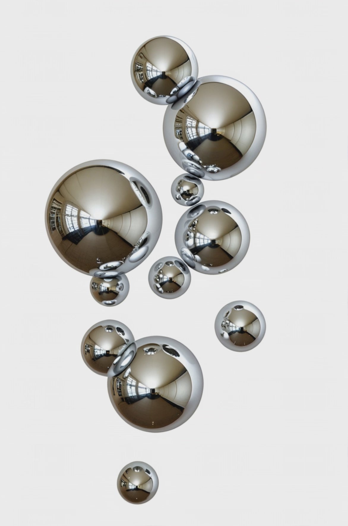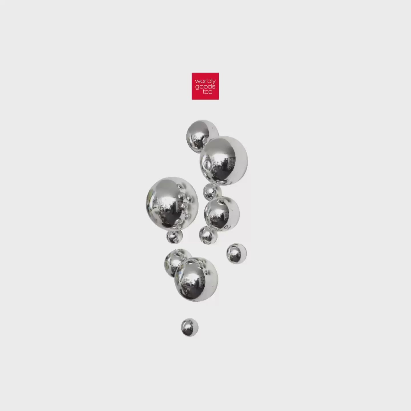 Worldly Goods Too SILVER-PLATED GLASS BALLS WALL SPHERES. Arrange these mirror-finished glass spheres in any way you choose, and the design will be uniquely yours. The mirror effect is created by swirling silver nitrate on the inside of each expertly hand-crafted blown glass sphere. Massed together, these spheres create a distinctive focal point wherever they are mounted.