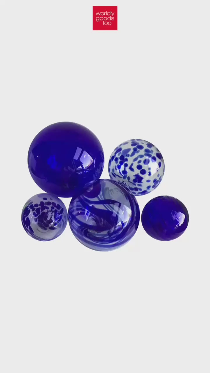Bring style and color to your wall with this expertly hand-crafted assortment of beautiful glass spheres. Your Sphere Set of 5-Cobalt blue swirls and spots add dimension to any space.
