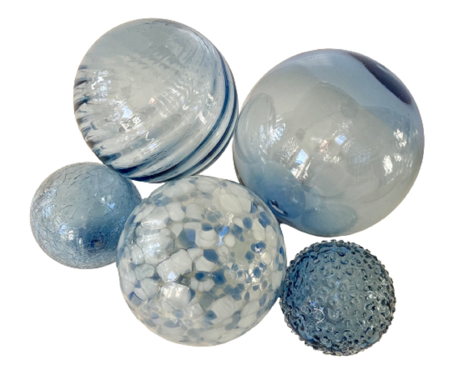 Add visual intrigue and texture to a blank space with an assortment of glass Decorative Glass Balls. Hand-blown by talented craftsmen. These decorative accent pieces can be arranged as your imagination sees fit.